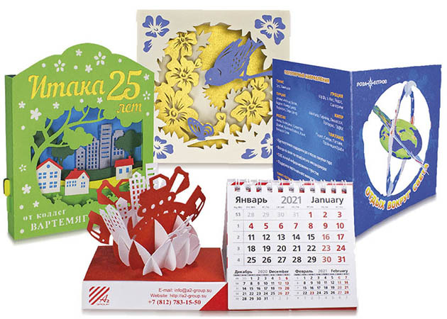 Предлагаем вам готовые варианты объемных дизайнерских открыток и календарей, которые можно купить или заказать уже сейчас. Возможна разработка индивидуального дизайна.